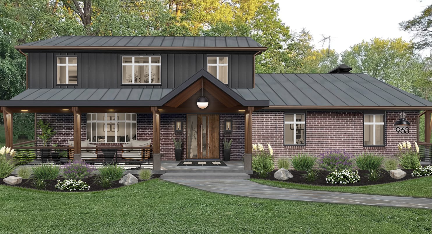 Red brick house with grey. A white house with a light-colored metal roof will help reflect the suns heat away. Check desired profile page to view color options for details.